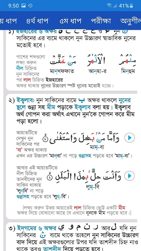 - রঙ্গীন তাজবীদ চিহ্নসহ নামাজের দোয়া ও সূরার অনুশীলন