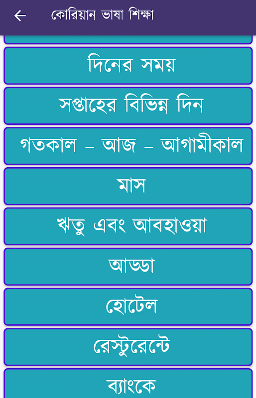 আমি এই অ্যাপে কোরিয়ান ভাষার কিছু ধারনা দিতে চেষ্টা করেছি। যেমন,