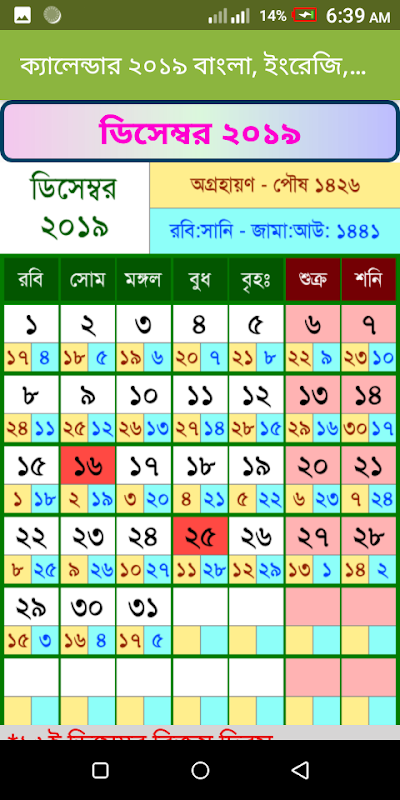 ক্যালেন্ডার ২০১৯ বাংলা, ইংরেজি, আরবি Calendar 2019 1.1