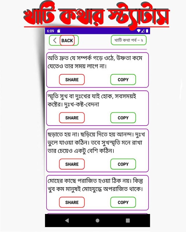 এই এপসটিতে মন মতানো সব খাটি কথা বা উপযুক্ত কথার এসএমএস পবেন, এই অ্যাপ টি ব্যবহার করে নিজের জ্ঞানকে বাড়িয়ে নিতে পারেন। নেটা কানেকশন ছাড়াই অ্যাপ টি ব্যবহার করতে পারবেন। আশা করি অ্যাপ টি ভালো লাগবে।খাটি কথা স্ট্যাটাস ২০২১।