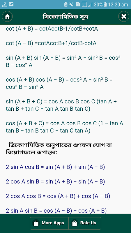 গণিত শিক্ষার জন্য যা যা সূত্র দরকার তা সব কিছৃ রয়েছে এই অ্যাপটিতে