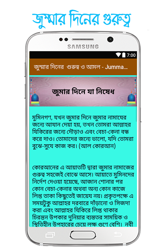 মুসলমানদের জন্য জুম্মার দিন অতি গুরুত্ব পূর্ণ দিন। এই দিন অনেক ধরনের ফজিলত আছে। আমরা এই অ্যাপে জুম্মার দিন সম্পর্কে অনেক ধরেনর গুরুত্ব পূর্ণ বিষয় তুলে ধরা হয়েছে।