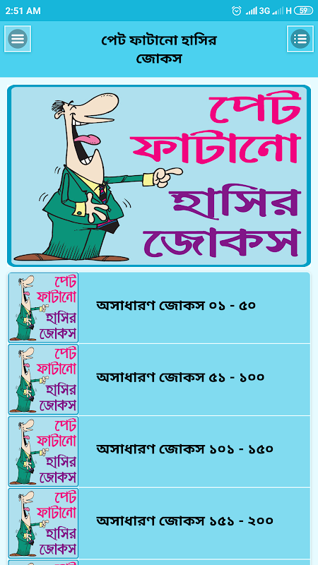 This is an app for best bangla funny jokes 2020. It contains dom fatano hasir jokes in bengali. This bangla koutuk app also includes ‘pet fatano boka bananor boltu jokes’ & gopal bhar, molla nasiruddin hojja & mirakkel mojar jokes dhadha. However those who are interested in fun and entertainment are cordially welcomed to install this fun app.