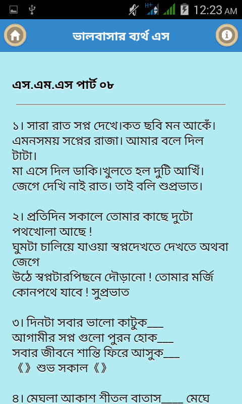 ব্যর্থ প্রেমের কাহানী আর গল্প জীবনে ছুটি নাহি দেয়, চায় না মন পড়তে তবু ও চোখ চায় না সরতে। কিন্তু কিছু উপায়ে শেষ করতে পারেন আপনার জীবনের সব ব্যর্থ প্রেমের কষ্ট। তাই আজ আমরা আপনাদের জন্য তৈরি করেছি অনেক কষ্টে ভরা জানা অজানা এস এম এস নিয়ে সেরা ব্যর্থ কষ্টের এস এম এস এপস । আর ও যা থাকছে আমাদের এই এপস এ তা হল। আপনার প্রিয়জনের মনকে নিয়ন্ত্রনে আনার সুন্দর কষ্টের এস এম এস যা আপনার প্রিয়জনকে খুব আকর্ষণ করবে । ও আপনাকে সহজে বুঝতে পারবে এবং আপনার পতি তার ধ্যান ধারনা পরিবর্তন করে তুলবে , চাইলে আপনি আমাদের এই এপস এ চেষ্টা করে দেখতে পারেন।