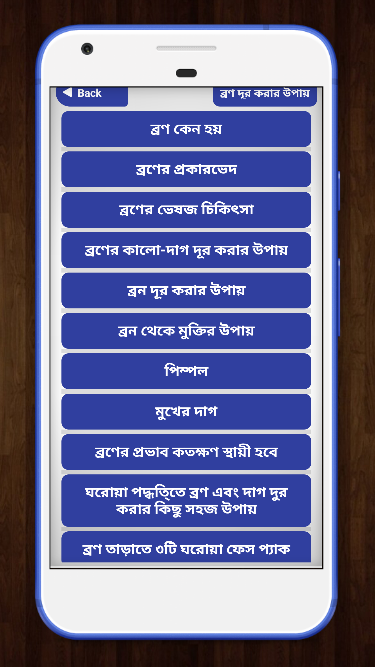 এই অ্যাপটিতে আরও আছে পিম্পল মুখের দাগ ব্রণের প্রভাব কতক্ষণ স্থায়ী হবে কিভাবে নিজের যত্ন নিতে পারেন কিভাবে চিকিৎসা করা যেতে পারে ছেলেদের ব্রণ থেকে মুক্তির উপায় মেয়েদের ব্রণ থেকে মুক্তির উপায় দাগ দূর করার উপায়।ছেলেদের ত্বক ত্বকের পরিচর্যা ব্রণ থেকে মুক্তি ব্রণ এর চিকিৎসা ব্রণ কেন হয় ব্রণের দাগ দূর করার ক্রিম।ব্রনের গর্ত দূর করার উপায় ব্রনের দাগের ঔষধ ব্রনের ক্রিম ব্রণের হোমিও চিকিৎসা মুখে ব্রণ কমানোর উপায় ব্রণ সমস্যার সমাধান মুখের মেছতা দূর করার উপায়।