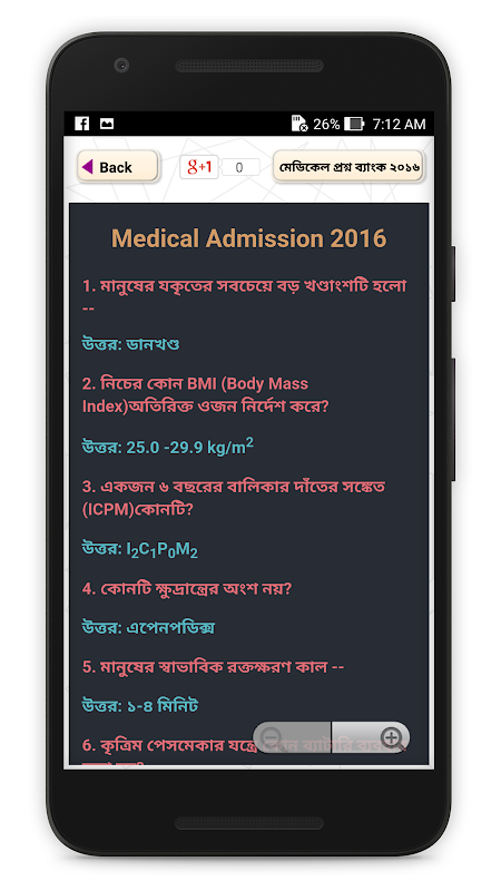 মেডিকেল ভর্তি পরীক্ষা অতি সন্নিকটে। মেডিকেল প্রশ্ন ব্যাংক নিয়ে আমাদের এই বারের আয়োজন। মেডিকেল বিগত ১৬ বছরের প্রশ্ন নিয়ে এই অ্যাপটি। মেডিকেল প্রশ্ন অ্যাপটিতে আপনারা প্রশ্ন এবং উত্তর একসাথে পাবেন। মেডিকেল বই গুলোতে এই প্রশ্ন গুলো রয়েছে। যারা বি সি এস প্রস্তুতি নিচ্ছেন তারা এই অ্যাপটি ডাউনলোড করলে উপকৃত হবেন। মেডিকেল প্রশ্ন ব্যাংক অ্যাপটি আপনারা খুব সহজেই ব্যবহার করতে পারবেন। মেডিকেল ভর্তি পরীক্ষার প্রশ্ন নিয়ে আমাদের এই অ্যাপ।