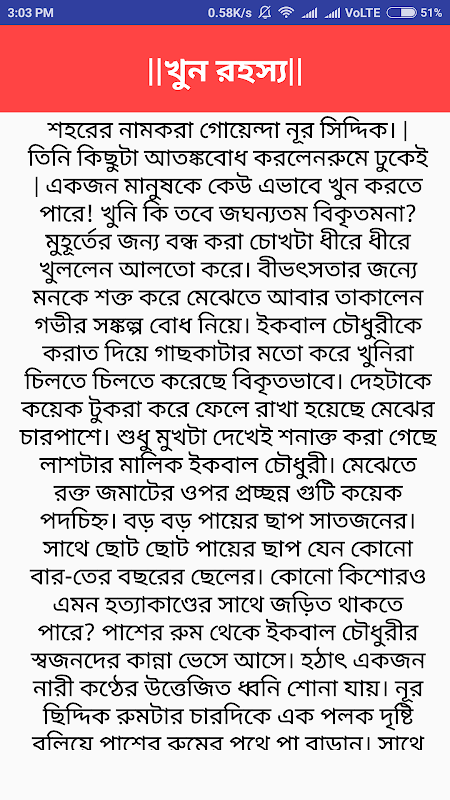 Detective story book in bengali language is very much popular. This app is very helpful for detective story lover.