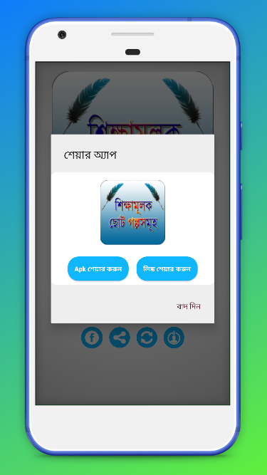 আজকে আপনাদের জন্য নিয়ে এসেছি বাংলা শিক্ষামূলক ছোট গল্প। এই অ্যান্ড্রয়েড মোবাইল অ্যাপটি থেকে গল্প পড়লে আপনারা অনেক কিছু শিখতে পারবেন। প্রতিটি গল্পে পাবেন অনুপ্রেরণা যা আপনাকে সামনে এগিয়ে যেতে সাহায্য করবে। এখন বাংলা গল্পের বই অনেক জনপ্রিয়। সবাই বইয়ের লাইব্রেরি থেকে রূপকথার গল্প, রোমান্টিক ভালোবাসার গল্প, বিখ্যাত ব্যক্তিদের মজার কাহিনী, ভূতের গল্প, গোপাল ভাঁড়ের গল্প ও ঈশপের গল্প সহ অসংখ্য বাংলা বই নিয়ে থাকেন। তাই আমরা আপনাদের জন্য এই মোবাইল অ্যাপটি নিয়ে এসেছি। এছেরাও আমাদের অন্যান্য অ্যাপ পাবেন প্লে-স্টোর। আপনার যা প্রয়োজন তা আপনি ডাউনলোড করে নিতে পারবেন একদম ফ্রি । আশা করি এই শিক্ষামূলক গল্প অ্যাপটি আপনাদের ভাল লাগবে। তাই আর অপেক্ষা না করে আমাদের মোবাইল অ্যাপটি আজই ডাউনলোড করুন।
