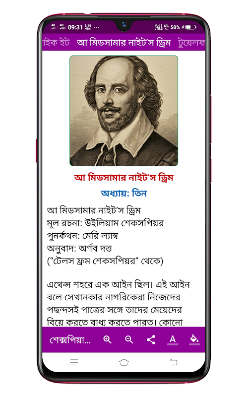 শেক্সপিয়ার সমগ্র Shakespeare - অ্যাপটিতে নিম্নলিখিত বিষয়গুলি রয়েছে।
