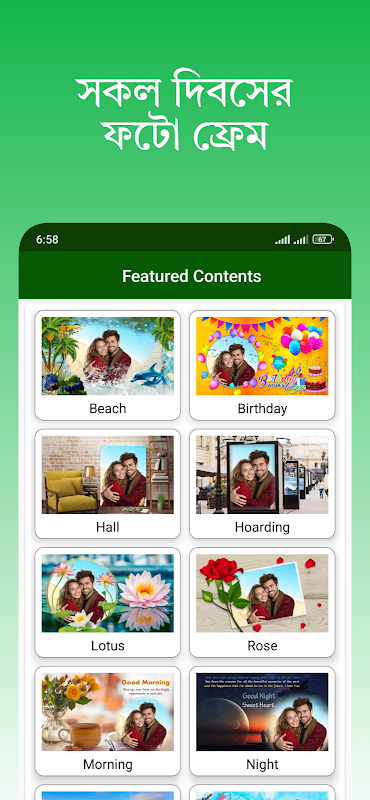 Fotoğraflarınızı bu inanılmaz 21 Şubat fotoğraf çerçevesi, 26 Mart fotoğraf çerçevesi, shadhinota dibosh fotoğraf çerçevesi ve 16 Aralık Bangladeş Zafer Günü Fotoğraf Çerçeveleri Uygulamasıyla süsleyin.
