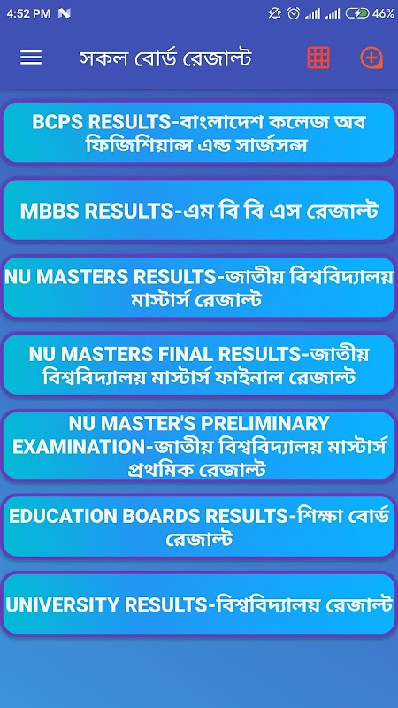 এই অ্যাপের মাধ্যমে খুব সহজ ও তাড়াতাড়ি উপায়ে পি.এস.সি ,জে.এস.সি , এস.এস.সি , এইচ.এস.সি , অনার্স , ডিগ্রি , মাস্টার্স , ইত্যাদি পরীক্ষার রেজাল্ট ও মার্কসিটসহ দেখতে ও জানতে পারবেন।