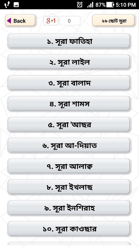 ২৬ টি ছোট সূরা - small surah অডিও জানার জন্য আজই ডাউনলোড করুন আমাদের এই অ্যাপটি।