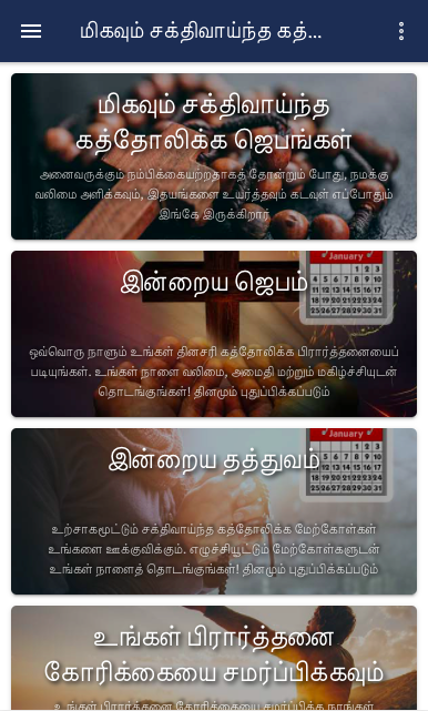 பயன்பாட்டில் தமிழ் மொழியில் மிகவும் சக்திவாய்ந்த கத்தோலிக்க பிரார்த்தனைகள் உள்ளன. கத்தோலிக்க பிரார்த்தனைகளை நீங்கள் தமிழில் படிக்கலாம்.