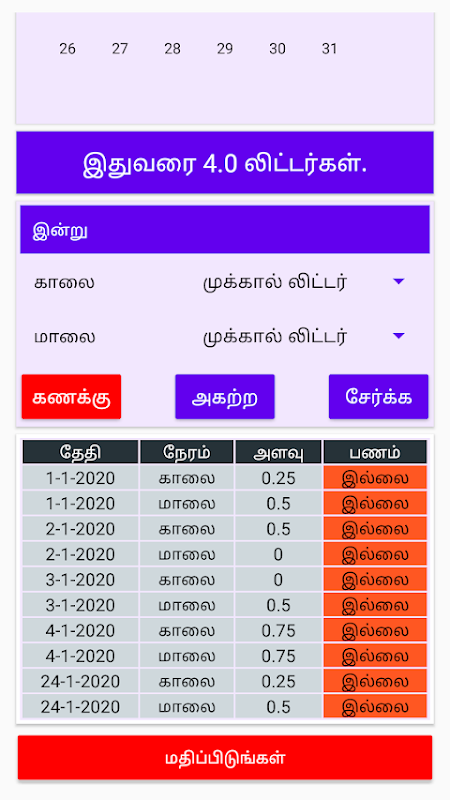 தங்களின் ஒரு நிமிட வேலை என்பது , தினமும் அன்றாடம் வாங்கிய பாலின் அளவு , அதை இந்த செயலியில் பதிவிட வேண்டும்.