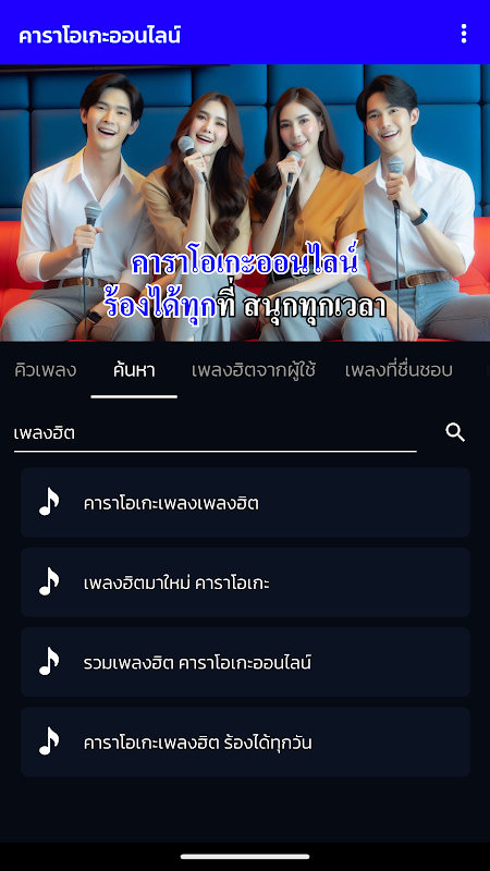 - Tay şarkı karaoke Luk Thung, Mo Lam, String, Suntaraporn, Dance, Hip-Hop for Life ve International gibi çeşitli müzik türleri.