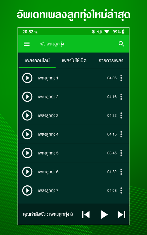 - อัพเดตเพลง ลูกทุ่งไม่ใช้เน็ต ใหม่ๆ ให้กับผู้ใช้งาน