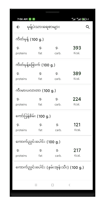 ကယ်လိုရီတန်ဖိုးများ 1.0.8