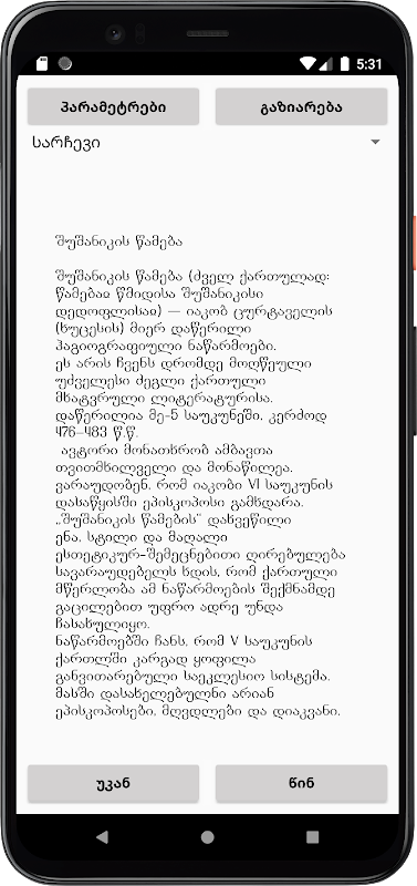 Bu, günümüze ulaşan en eski Gürcü kurgu anıtıdır. 5. yüzyılda, yani MÖ 476-483'te yazılmıştır.