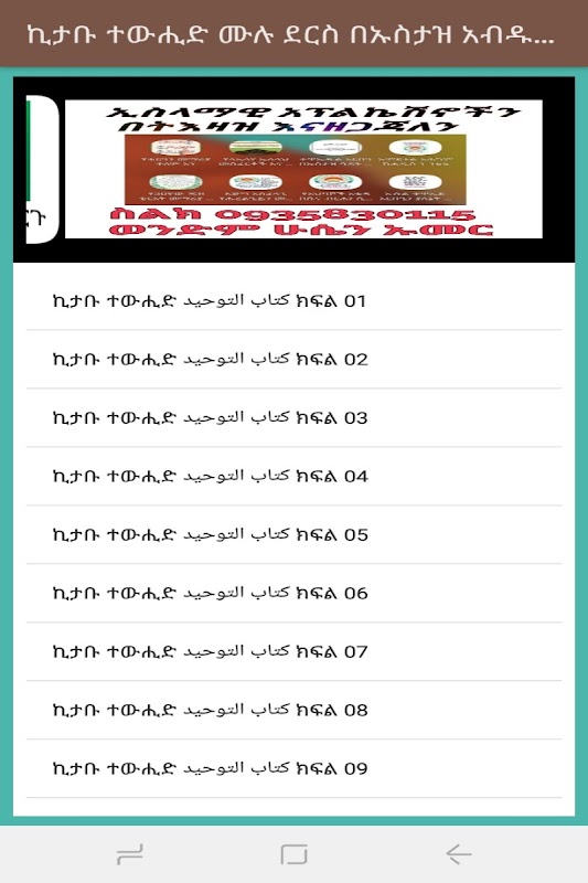 ኪታቡ ተውሒድ የተውሒድ መማሪያ አፕ በኡስታዝ አብዱሶመድ ሙሐመድ ኑር ያለኔት ሙሉ ኪታቡ እዬታዬ በድምጽ በክፍል በክፍል የቀረበ