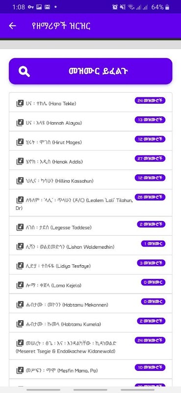 -የዘማሪዎች መዝሙር በ ስኬል ተከፋፍሎ እንዲሁም በ አልበም