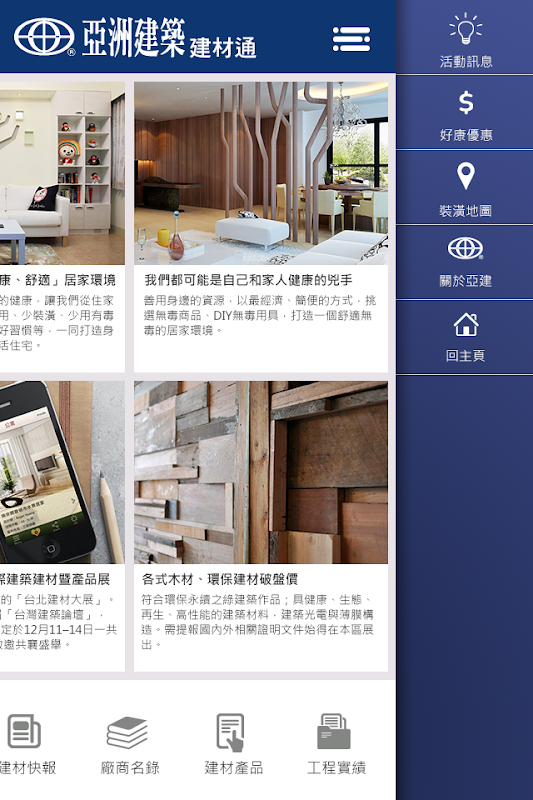 【優惠好康】:提供豐富精彩的建築建材業內廠商優惠促銷活動及好康資訊。