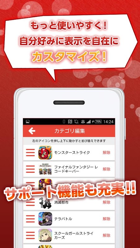 - 無駄な情報はいらない 自分の知りたいプレイ中のゲーム攻略情報と新作情報だけを表示する事が可能です!