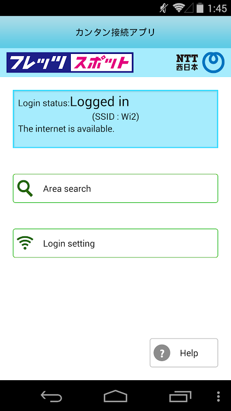 "フ レ ッ ツ · ス ポ ッ ト" カ ン タ ン 接 続 ア プ リ kolayca bağlantı yapmak için kullanılan bir uygulamadır "フ レ ッ ツ · ス ポ ッ ト", NTT Batı'nın kamu kablosuz LAN hizmeti.