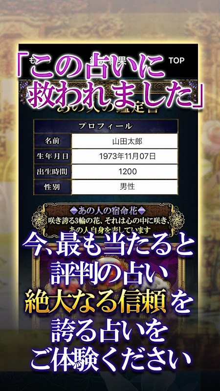 あなたの人生をつかさどるのは、3つの花。それぞれの花には、恋、結婚、仕事、お金、人間関係等、人生に起こるであろうすべての出来事を左右する宿命が託されています。