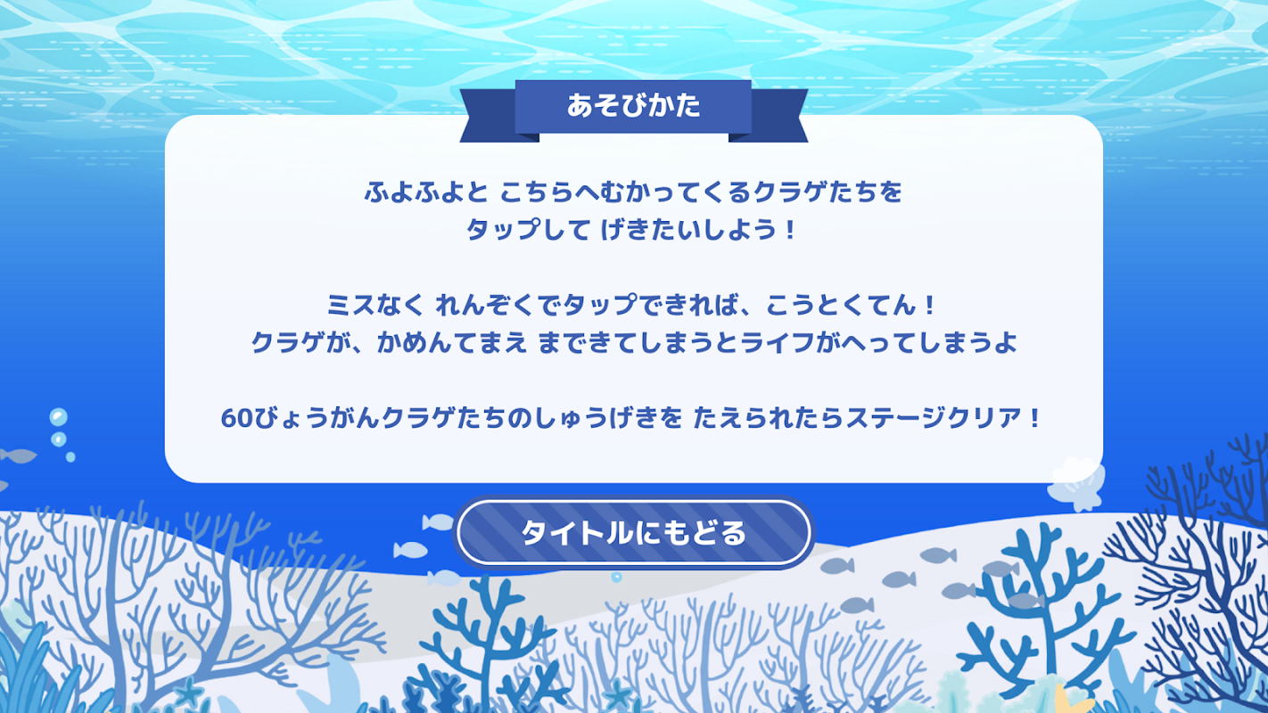 Mümkün olduğu kadar ekrana dokunarak ve denizanasının saldırılarına karşı koyarak oyunu temizlemeyi hedefleyin!