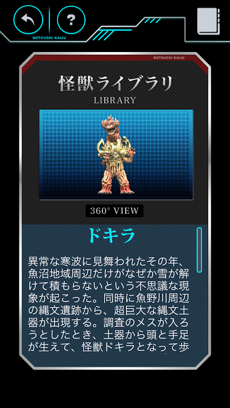 「怪獣撮影」でサーチできた怪獣を格納します。また怪獣のスペックを閲覧することが可能で す。