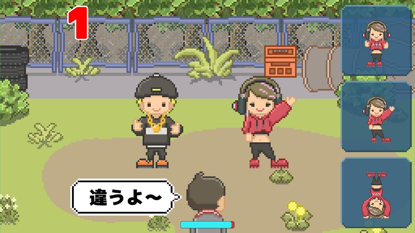 リズムにのって相手がポーズを決めたら、自分も同じポーズのパネルをタップしよう。