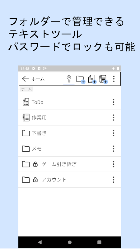Notlar ve şifreler gibi her türlü metni depolamak ve yönetmek için uygun bir uygulama. Şifre ile kilitlenebilir