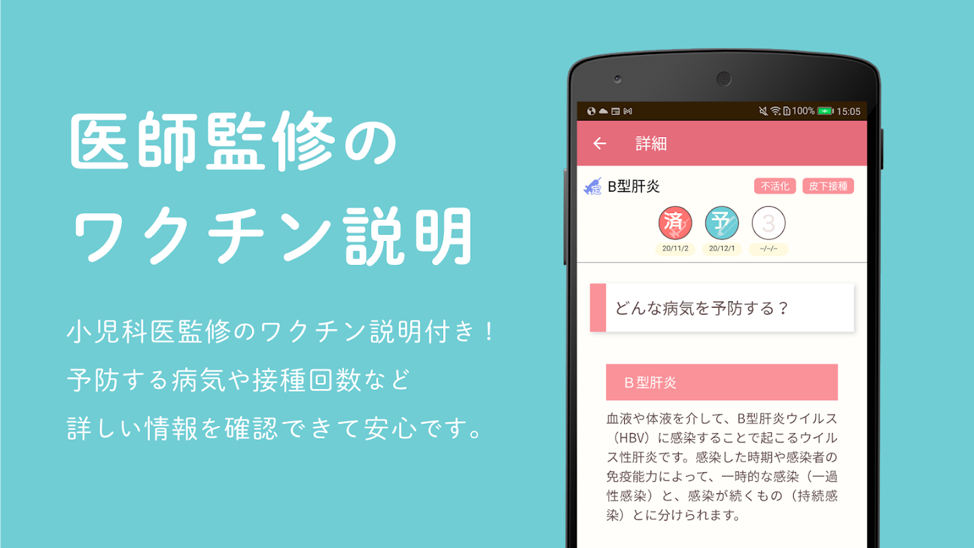 Doğumdan 2 ay sonra başlayan aşı, birçok çeşidi ve zamanı vardır ve kurulumu zordur! Ne enjekte ettiğinizi ve ne kaldığını görmenizi ve yönetmenizi kolaylaştıran bir uygulamadır. Çocuk bakım kaydı "Piyolog" ile bağlantı kurarak programı çiftle paylaşabilir ve aşı kaydını çocuk bakımı kaydı tarafına yansıtabilirsiniz.