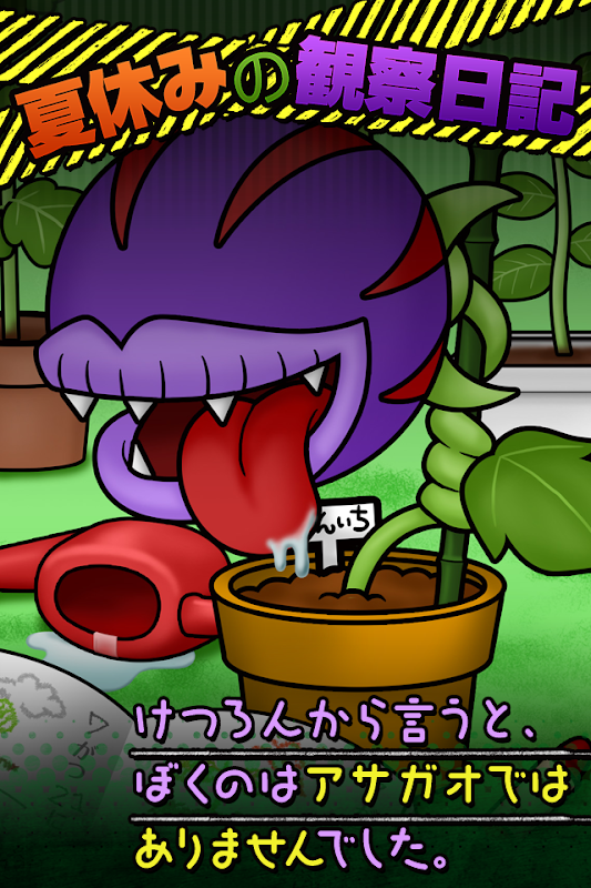小学生が夏休みに書く、アサガオ観察日記。それが、とんでもない方向へ――。最初ほのぼの、やがてホラー!?先の気になる無料放置ゲーム!!