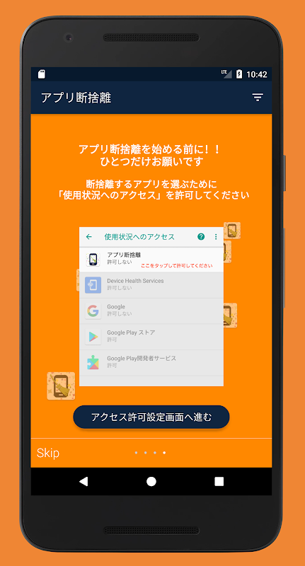 ・まずは「使用状況へのアクセス」を許可してください(アプリを起動すれば許可画面へ移動できます)