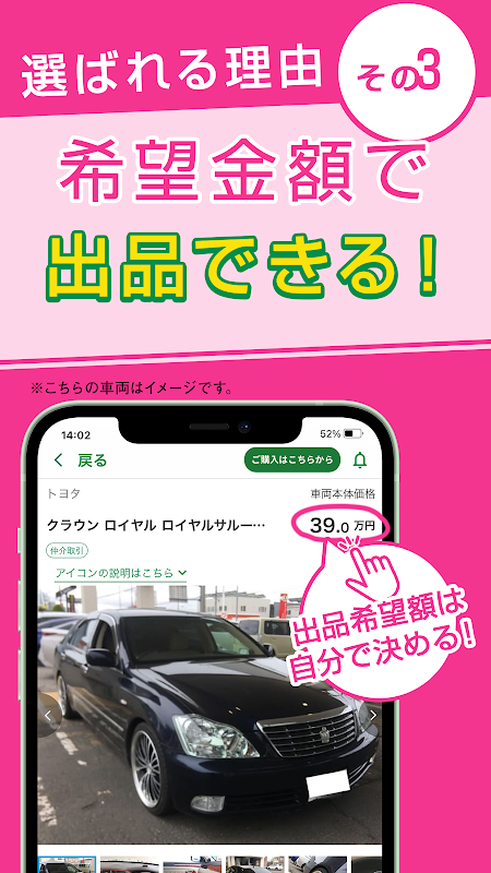 また、出品者、購入者ともに匿名で簡単にお車のお取引が出来ます。