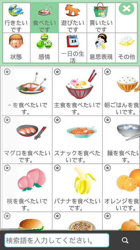 2. seçerseniz, örneğin ekranına geçmek için kategori (besini, çerez, meyve, vb) altında yeme ile ilgili, "Ben yemek istiyorum".