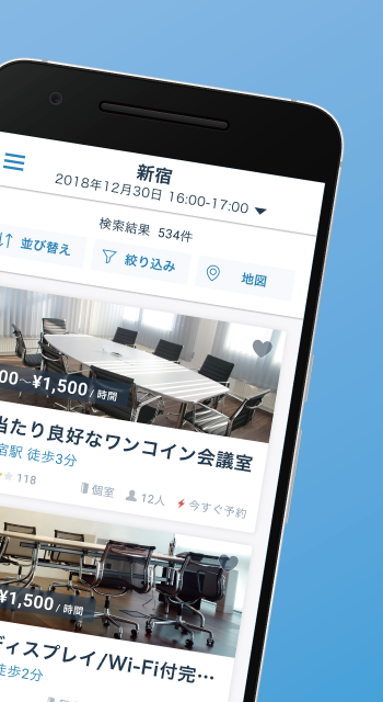 貸し会議室・レンタルスペースの予約アプリ「スペイシー」は、目的に応じた少人数でも大人数でも利用可能な会議室・レンタルスペースを多数掲載。