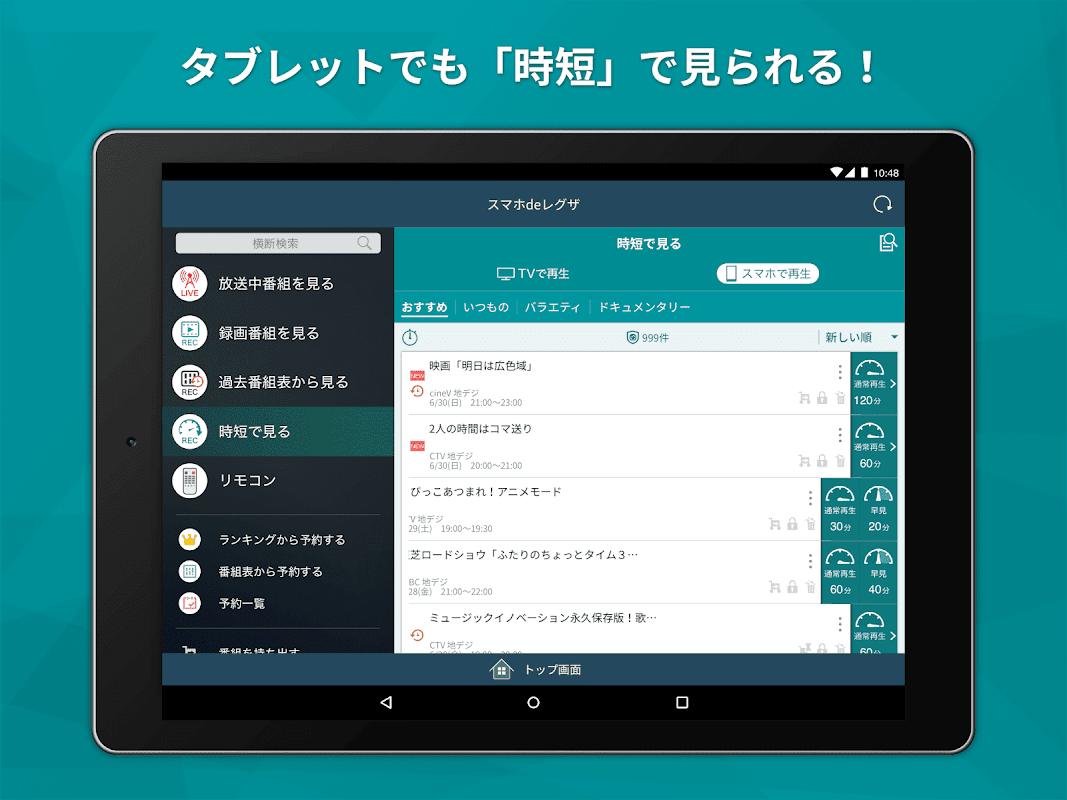 Akıllı telefon de REGZA'yı kullanarak, kayıt cihazı tarafından evin içinde ve dışında alınabilen TV yayınlarının keyfini çıkarabilir, ayrıca kaydedilen TV programını bir TV'de mi yoksa akıllı telefonda mı oynatacağınızı seçebilir ve aşağıdakiler dahil oynatma rotasını seçebilirsiniz: akıllı telefon ekranından zaman kazandıran oynatma yapabilirsiniz.