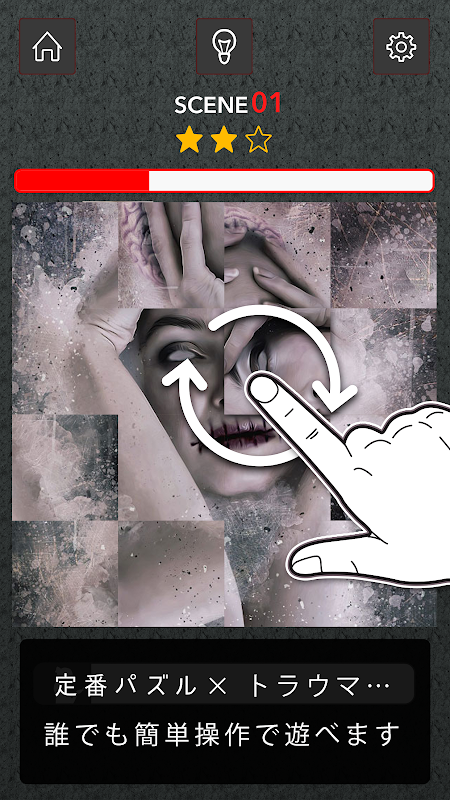 [世にも恐ろしいトラウマパズル]が登場…タップするとピースがくるくる回転…簡単操作で恐怖体験できるパズルゲームです…