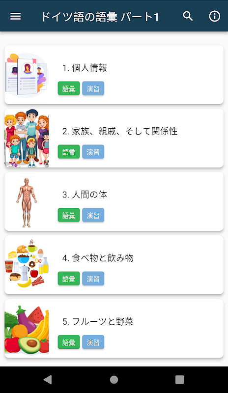 Tematik sözlüğümüzle Almancayı yepyeni bir şekilde keşfedin. Almanca Kelime Bilgisi Bölüm 1, resimler, tekrarlama sistemi ve etkileşimli alıştırmalarla Almanca kelime öğrenmek için mükemmel bir araçtır! Uygulamamızla öğrenmeyi daha ilgi çekici ve etkili hale getirin. Uygulamamız, günlük iletişim için ihtiyaç duyduğunuz kelimeleri hızlı ve sezgisel bir şekilde öğrenmenize olanak tanır. Uygulama özellikleri: Resimli tematik kategoriler: Ezberlemeyi teşvik etmek için görsel destekle seyahat, yemek, iş vb. kategoriler aracılığıyla öğrenin. Tekrarlama Sistemi: Bireysel ilerlemenize otomatik olarak uyum sağlayan akıllı bir tekrarlama sistemi ile öğrenmenizi optimize edin. İnteraktif Alıştırmalar: Yeni edindiğiniz kelime dağarcığınızın pratiğini yapın ve çeşitli etkileşimli alıştırmalarla öğrenmeyi eğlenceli hale getirin. Sesli telaffuz: Ses kayıtlarıyla doğru telaffuzu öğrenin. Doğrudan öğrenme: Çevrimdışı öğrenmeye her zaman, her yerde ulaşılabilir. Temel Kelime Bilgisi: Sözlük, kullanıldıkları 1200'den fazla Almanca kelime ve cümleyi içerir. Almanca Kelime Bilgisi Bölüm 1, geleneksel öğrenme yöntemlerini etkileşimli ve görsel araçlarla birleştirmek isteyen modern öğrenciler için oluşturuldu. Seviyeniz ne olursa olsun, Almanca'yı etkili bir şekilde öğrenmenize yardımcı olacak araçları burada bulacaksınız. Uygulamayı indirin ve Almanya yolculuğunuza bugün başlayın.
