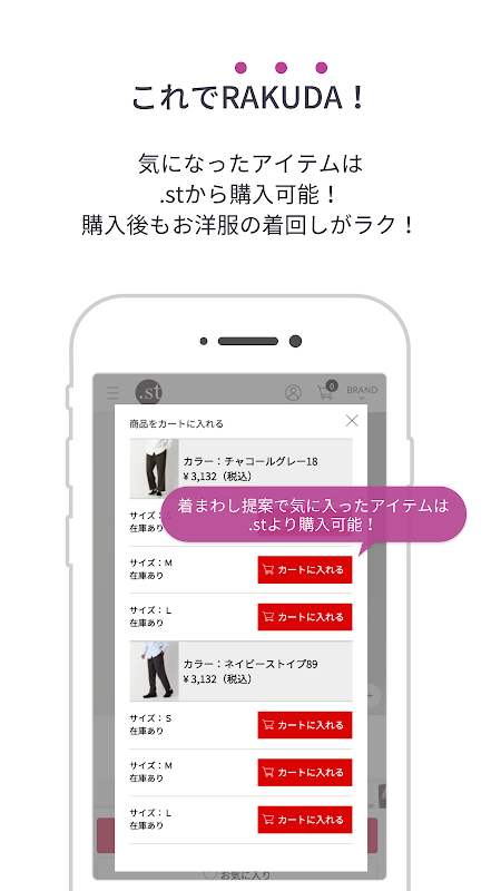 購入したアイテムは着回し提案をアプリでお知らせします。購入後の着回しもラク!