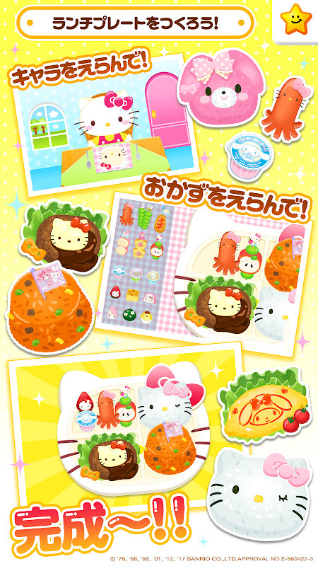 サンリオのキャラクターを選んで、プレートにごはんやおかずを盛り付けるよ!