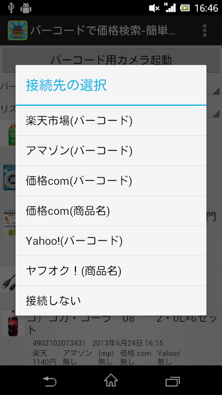 バーコードを読込みますと自動で最安値を取得して表示します。