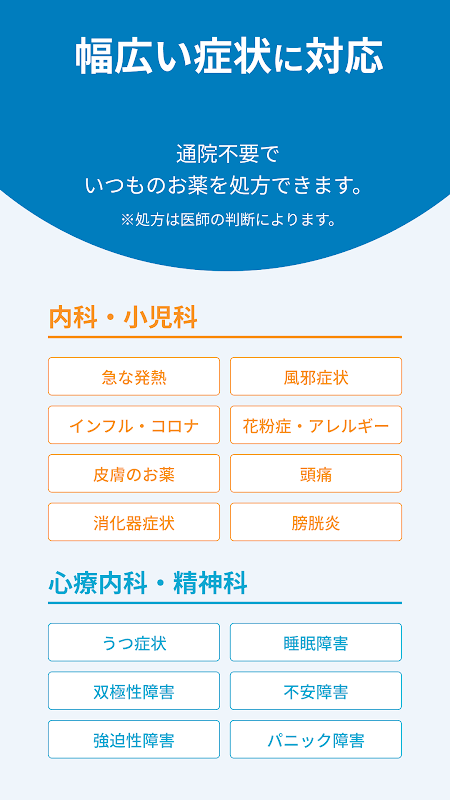 Bu, yerel yönetimlerle işbirliği içinde ev ziyaretlerine ve çevrimiçi tıbbi tedaviye izin veren bir sağlık uygulamasıdır. Dahiliye ve pediatri tarafından geceleri ve tatil günlerinde ev ziyaretleri ve çevrimiçi tıbbi konsültasyonlar gibi semptomlarınıza göre tıbbi bakım seçebilirsiniz.