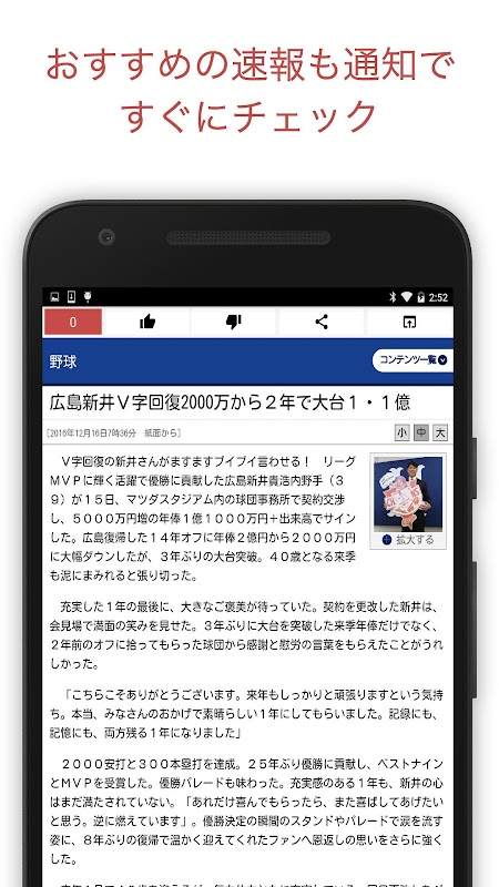 カープファンならおさせておきたいニュース速報を簡単にまとめ読みできる無料アプリです。