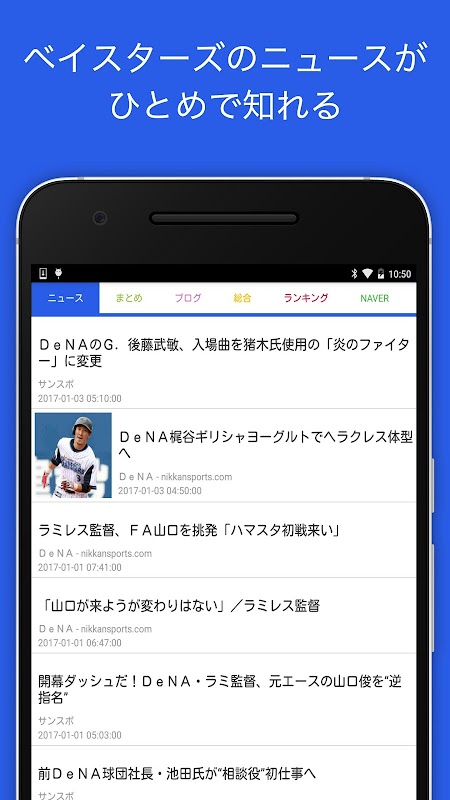 プロ野球チーム:横浜DeNAベイスターズの最新ニュース、まとめブログ、試合結果速報等の情報を簡単に知れるアプリです。