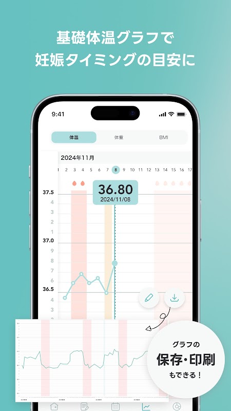 ・Kilo ve bazal vücut sıcaklığı yönetimi için grafik desteği