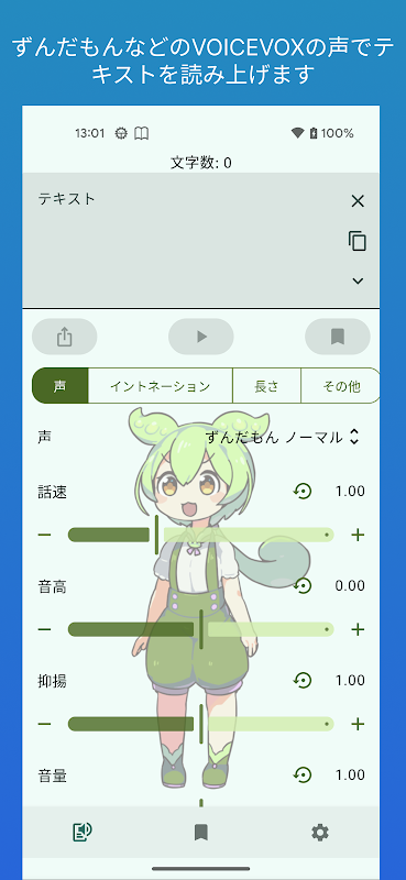 Metin, Zundamon ve Shikoku Medan gibi VOICEVOX sesleri kullanılarak okunur.