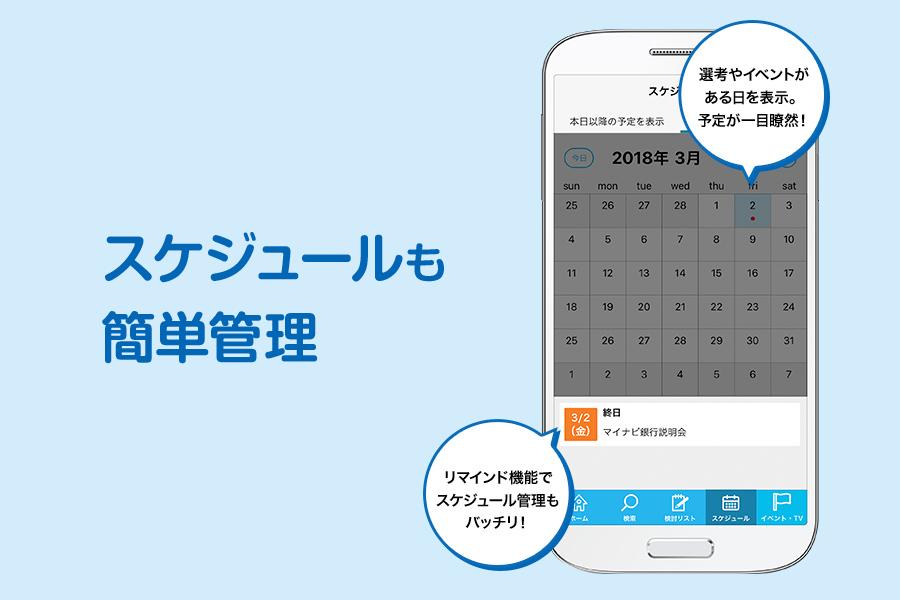 マイナビで登録した面接や、説明会等の就活スケジュールを簡単に管理することができます。